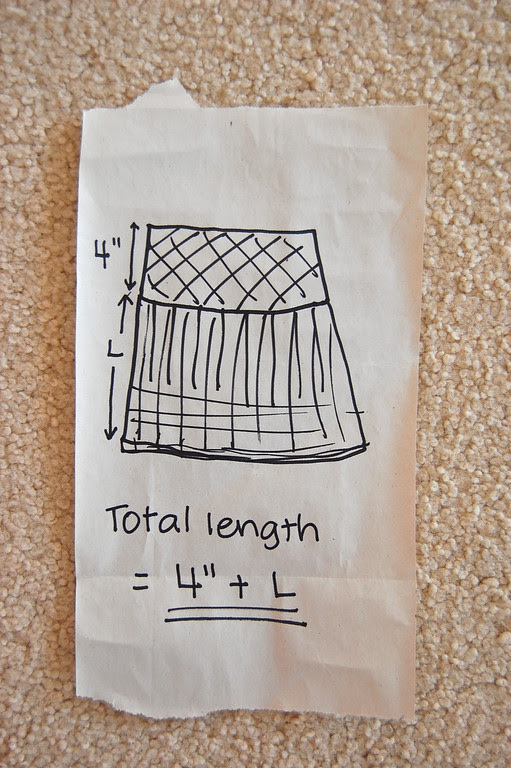 The height of this rectangle L should be the length of the skirt minus the yoke.
