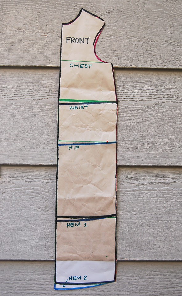 I'm finally getting around to drafting my first sloper. I'm so excited! Last time I got started (back when this was originally posted), my 4-year-old literally left in the middle of measuring to go be sick in the bathroom...it was the onset of a terrible flu for the whole family. This time went much better!