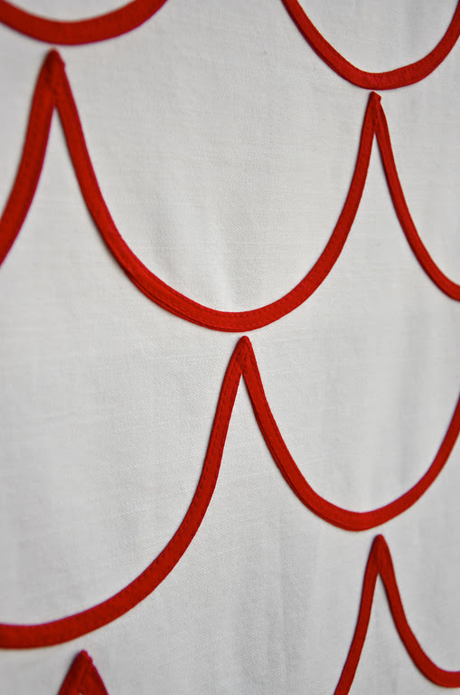 The shingles were bias tape (I made my own, since I needed about 7 yards) sewn into scalloped curves.